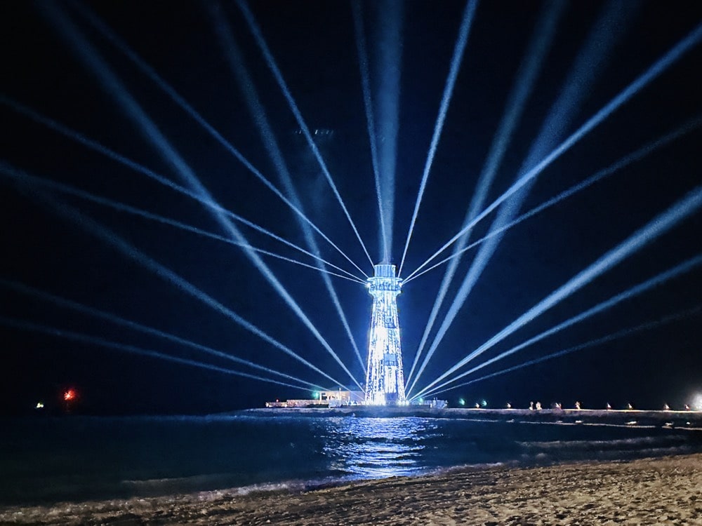 De vuurtoren is het middelpunt voor degenen die heerlijk willen loungen of van het uitzicht willen genieten. Je loopt er via een pier naar toe. ’s Avonds presenteert MSC op twee tijden een kleine lichtshow vanaf de vuurtoren. Vanaf je balkon, als je geluk hebt met uitzicht op het eiland, of vanaf het strand nabij de vuurtoren, heb je het beste uitzicht.
