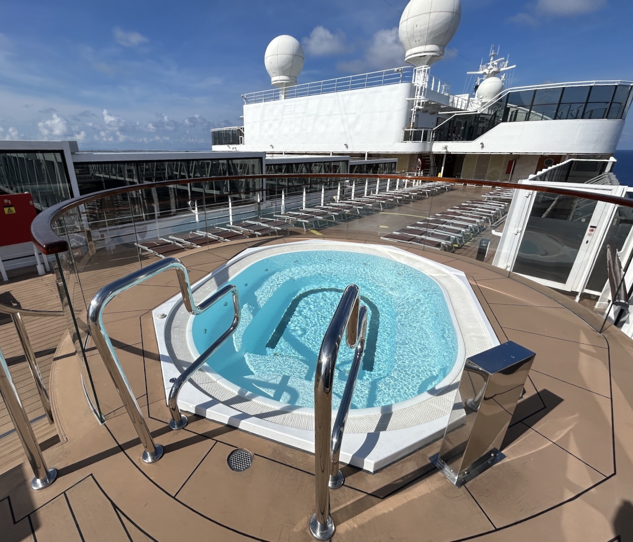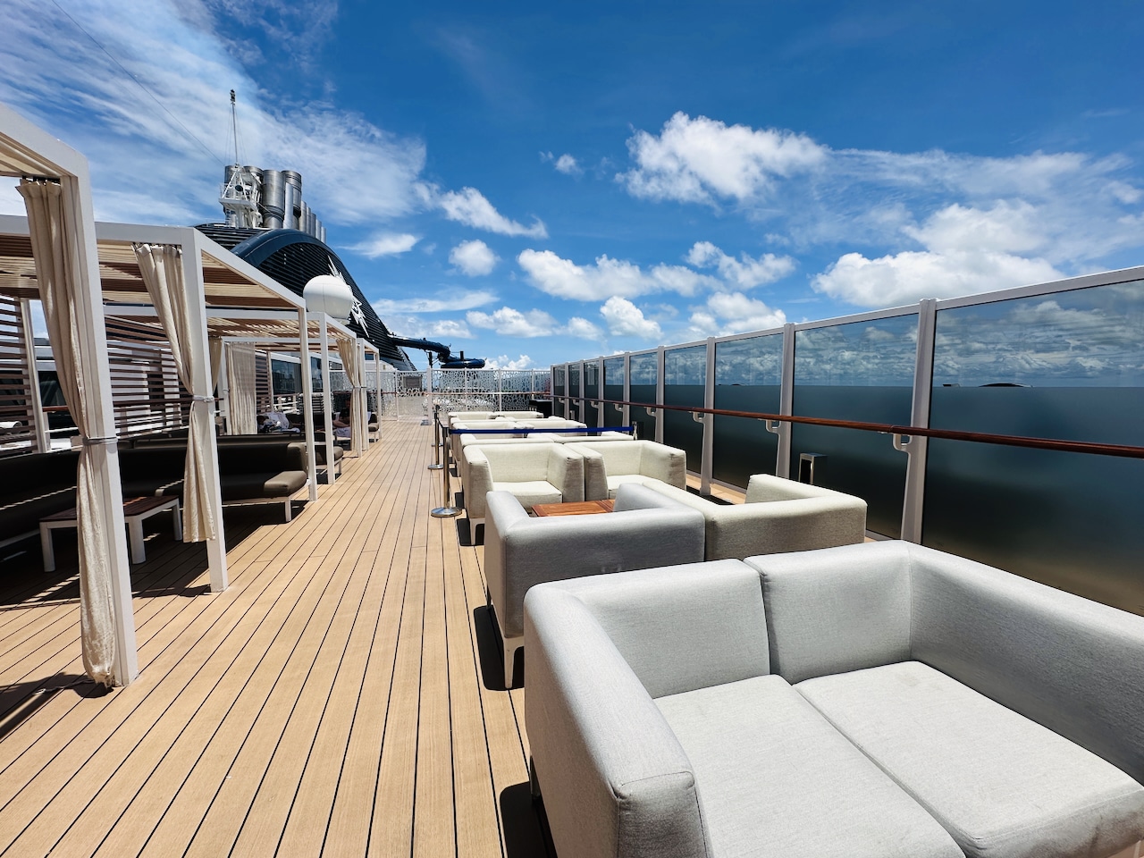 Het handigste vonden wij met name de toegang tot het exclusieve zonnedek: Top 19 Exclusive Solarium. Elk moment van de dag zijn daar ligbedden of één van de loungesets beschikbaar. Afkoelen kan je in de whirlpools die erbij horen. En een drankje haal je in de speciale Top 19 bar. Doordat wij bovendien een drankpakket hadden – deze is niet inclusief in het Aurea pakket, maar schaf je zelf aan – , konden we in een mum van tijd onze favoriete mocktails (of cocktails etc) daar halen. Tijdens de 8-daagse cruise was het zeer rustig op het zonnedek, en werden we er altijd hartelijk verwelkomd door de crew van het zonnedek!