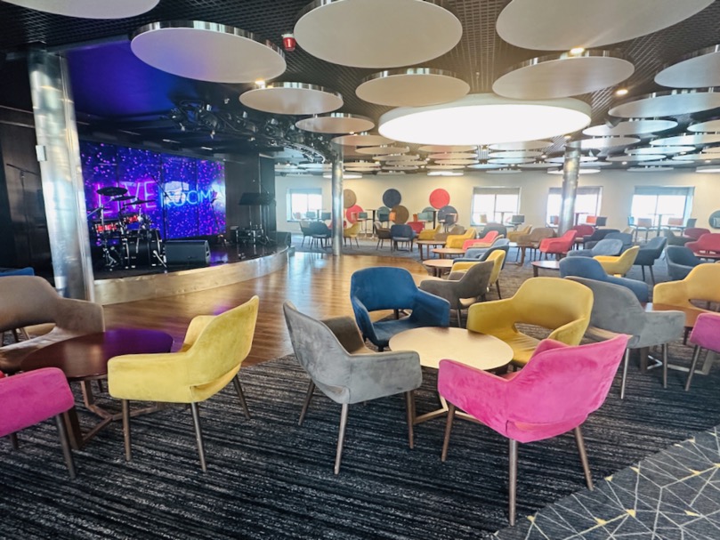 Dit is de plek waar trivia quizzen georganiseerd worden, bingo (echt heel populair hoorde ik) en de silent disco. Die moet je een keer geprobeerd hebben: je krijgt een koptelefoon op waar je je eigen muziek kunt aan kiezen. Je hoeft niet de dansvloer op om hiervan te genieten, want blijven zitten mag ook.