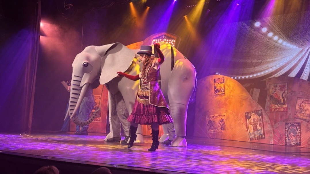 Het theater is de plek voor de mooie prijswinnende productieshows van de rederij. De show Jumbo is me erg bijgebleven: een enorme grote olifant uit het circus speelt daar de hoofdrol in.