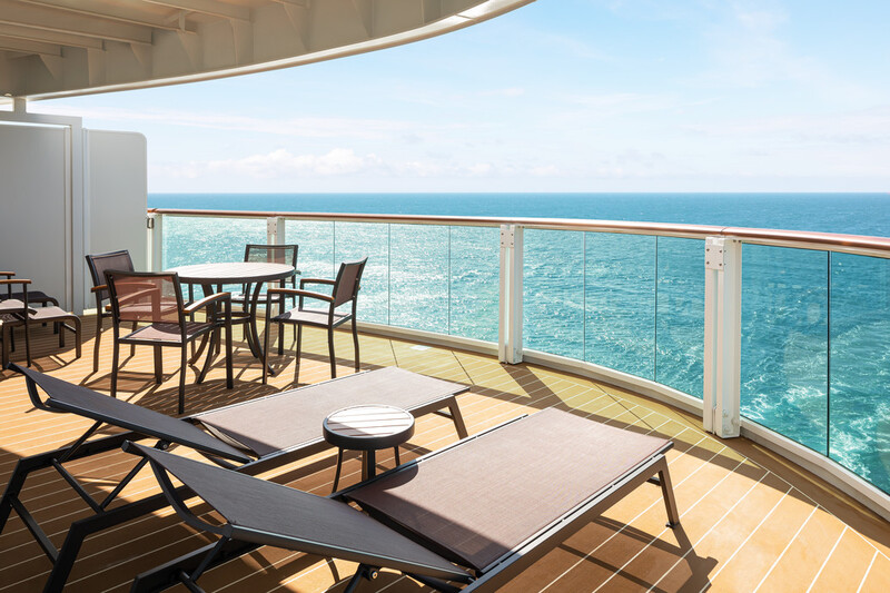 Wil je een rustige suite? Neem dan de suites aan de voorkant van het schip. Houd je van een bruisend en levendig uitzicht? Neem dan de suites aan de achterkant van het schip. Je hebt dan uitzicht naar beneden toe op het achterdek (dek 8) met whirlpools.