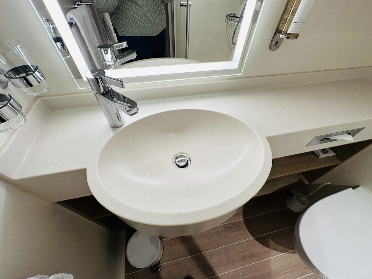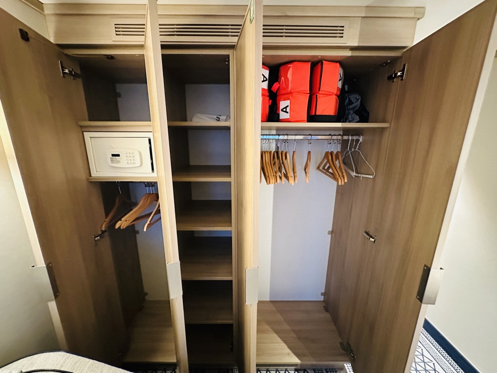 Hieronder zie je beelden van balkonhut 11203, mijn hut 🙂 Het is een hut op dek 11 stuurboord, redelijk vooraan. De hut is licht ingericht, en met een wit/blauw tapijt met veel motiefjes (waar je niet snel vlekken op ziet).