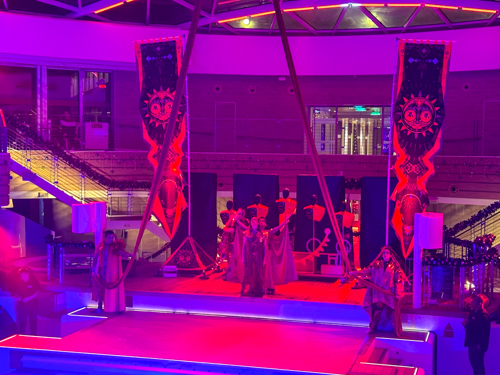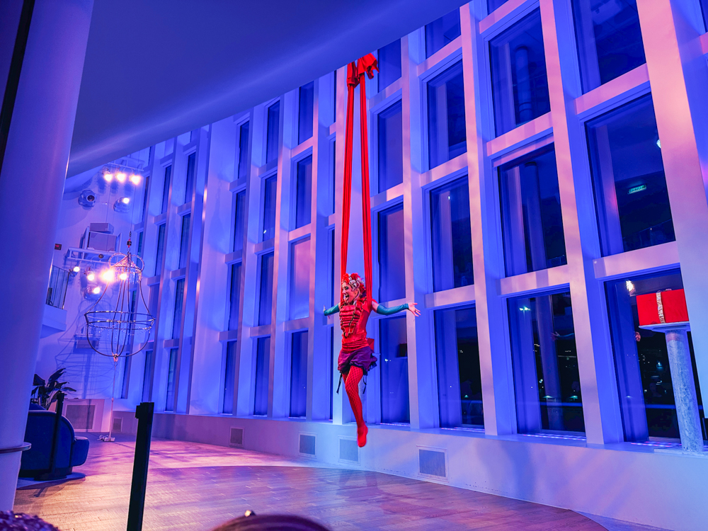 Verrassingsacts worden elke avond in het grote atrium ten tonele gebracht. Aan stuurboordzijde (rechts in vaarrichting) is langs de glazen wand een strook vrijgemaakt, waar de popup acts plaatsvinden. Zeker als je al een drankje aan het drinken bent, is het een leuke aanvulling.