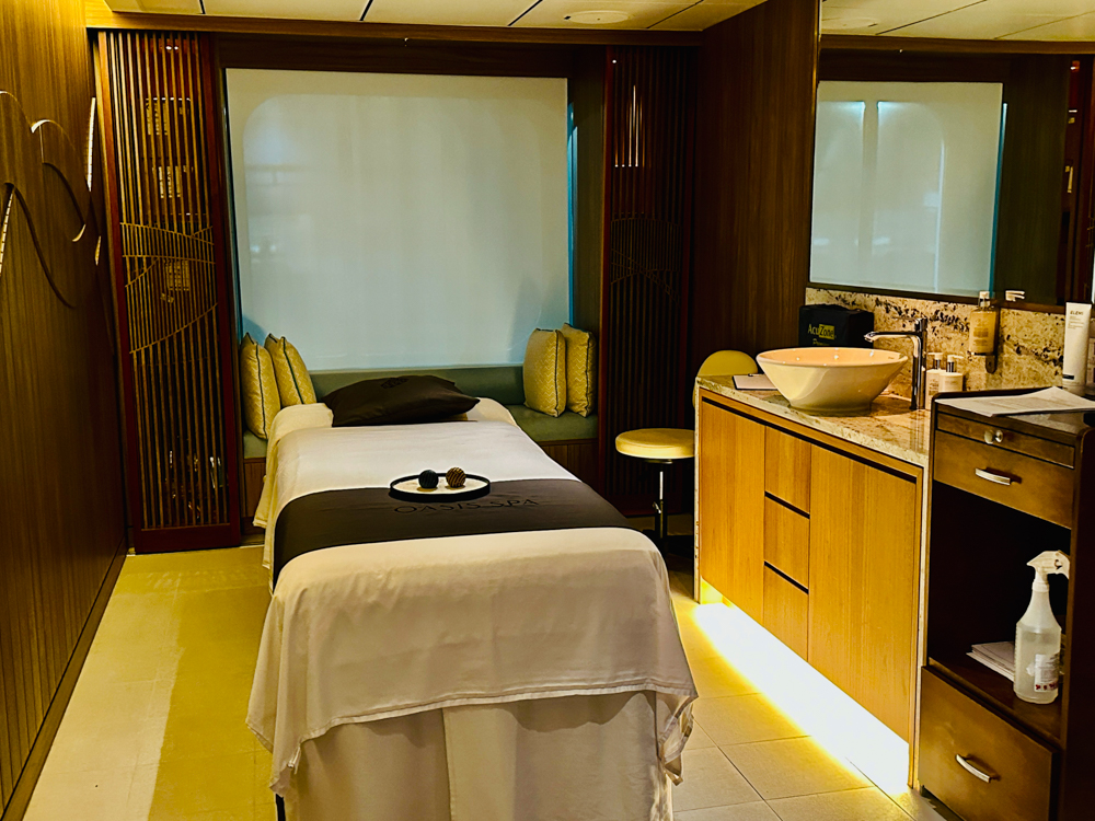 De spa op Iona is verspreid over twee dekken en omvat alles wat je van een spa kan verwachten: een nagelstudio, kapper en veel behandelruimten. Het huismerk dat hier gebruikt wordt bij behandelingen is de welbekende Elemis. De thermale suite – met een hydropool – is niet zeer ruim, gezien de grootte van het schip. Dus als je daarvan gebruik wilt maken, boek dan zeker de eerste dag je weekpas.