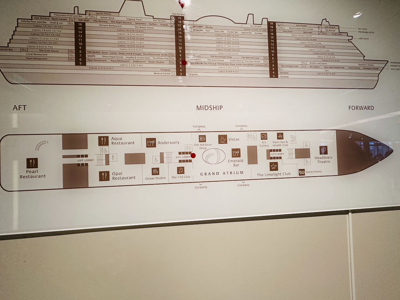 Een volmondig ‘ja’, Iona is echt een groot schip. In tegenstelling tot gelijksoortige schepen van AIDA en Costa Cruises vind ik de Iona wel ‘behapbaarder’: de lounges en restaurants zijn bijvoorbeeld voor mijn gevoel wat logischer ingedeeld en sneller te doorgronden. Zo kon ik eigenlijk op dag 2 mijn weg al goed vinden naar bijvoorbeeld het buffetrestaurant en het atrium.