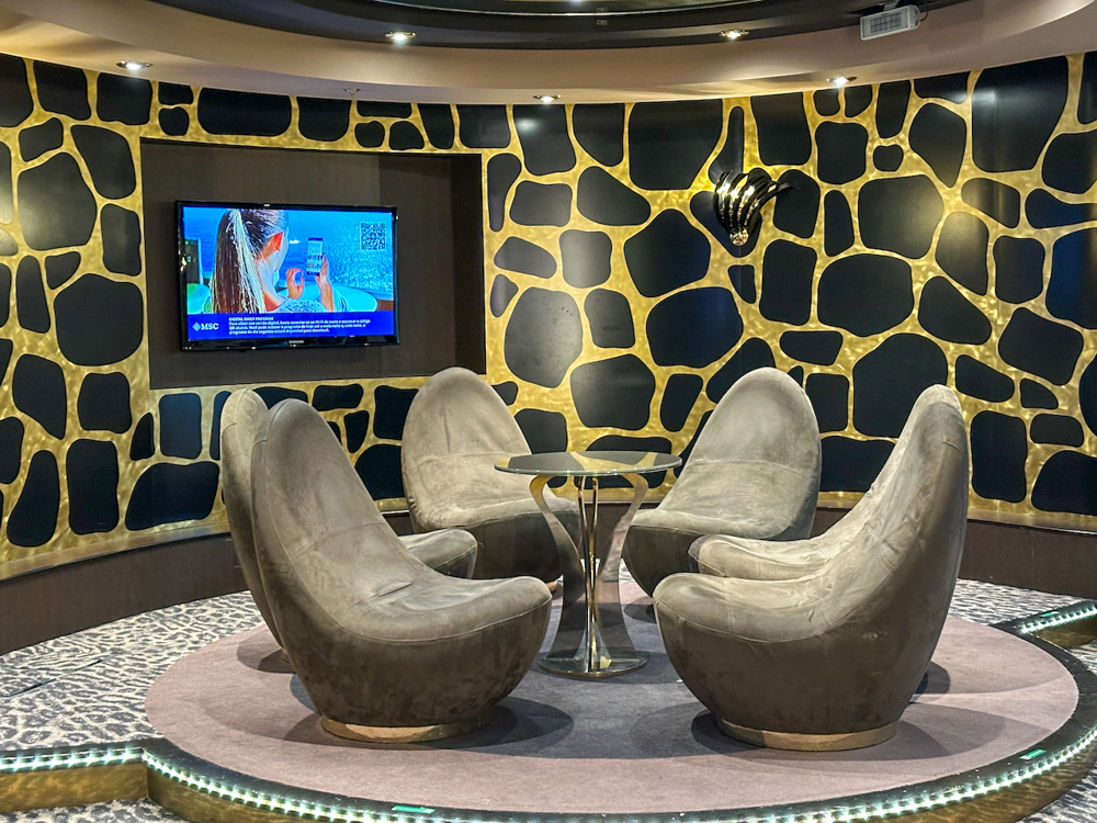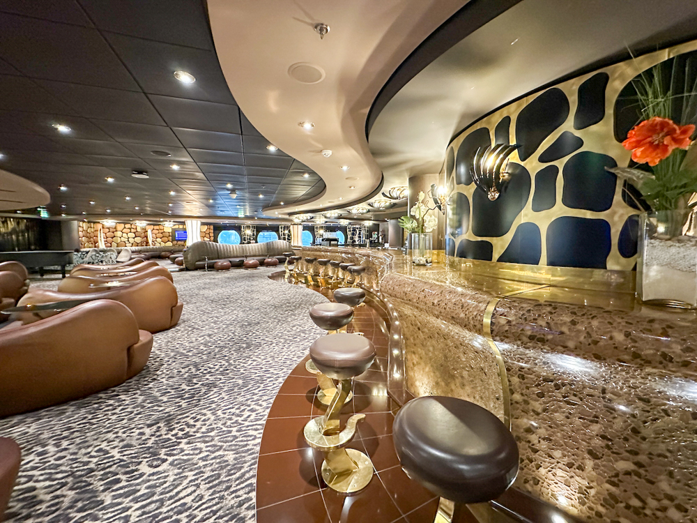 Uiteraard zijn er nog veel meer bars en mooie lounges. Wat te denken van een Safari lounge met bijpassende luipaard prints? Met stip de mooiste van het hele schip.