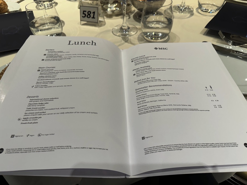 Aan boord zijn twee hoofdrestaurants, een buffetrestaurant en drie specialiteitenrestaurants. De beide hoofdrestaurants, Golden Lobster en l’Arabesque, bieden vaste zittingen aan. Alleen wanneer je een Aurea Experience bijboekt (lees hier meer over onze eigen Aurea Experience bij MSC), mag je bij een aangewezen restaurant binnen komen lopen wanneer je wilt. Hoofdrestaurant Golden Lobster strekt zich overigens uit tot 2 verdiepingen. Verwacht veel meerpersoonstafels bij deze restaurants.