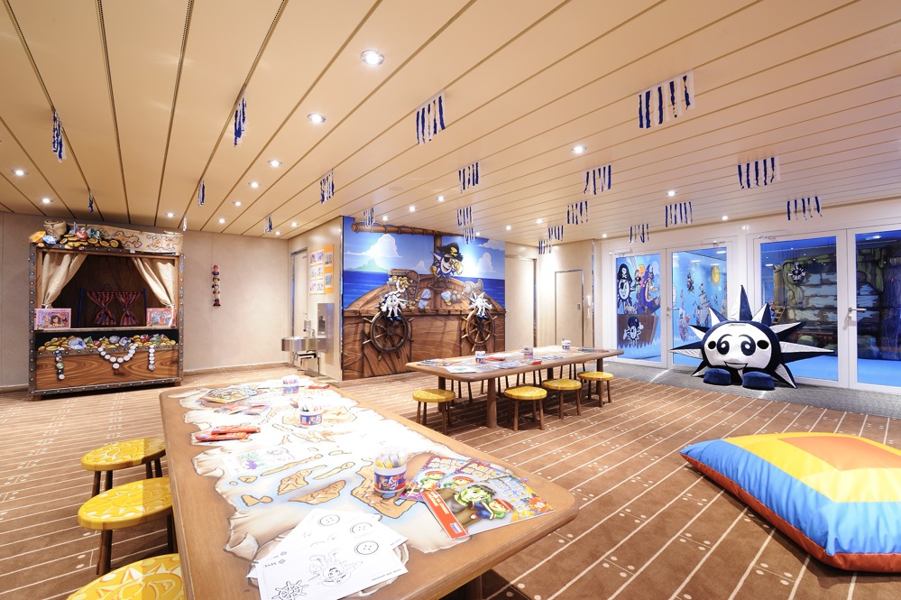 Voor kinderen en degenen die zich jong voelen, heeft het schip een indrukwekkende glijbaan! Het waterpark voor de kinderen is een toffe toevoeging naast de kinderclubs die aan boord zijn.