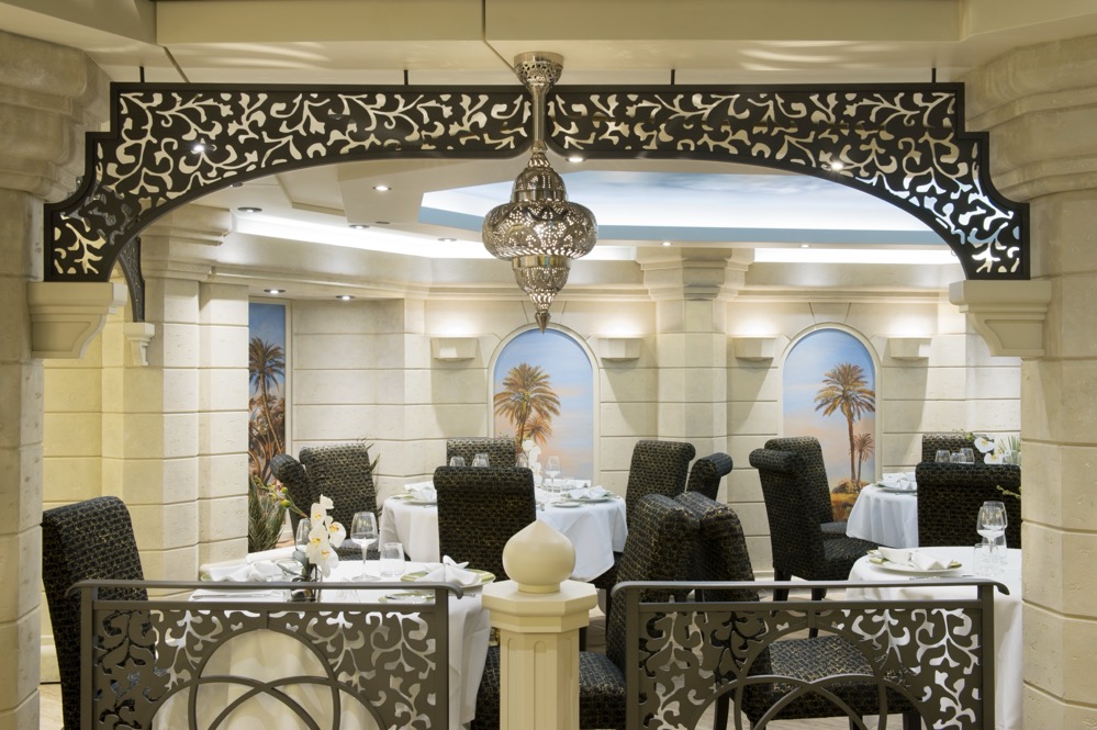 De specialiteitenrestaurants liggen verspreid op dek 7 en op een van de hoogste dekken. Pizzeria La Locanda biedt een typisch Italiaans sfeertje met op de menukaart uiteraard pizza’s en tapas. Het restaurant met het beste uitzicht is het sushi restaurant, Galaxy Kaito. Je hebt namelijk uitzicht op het zwembadencomplex op het middendek. Daarnaast is er ook een steakhouse aan boord, Butcher’s Cut. Voor deze drie specialiteitenrestaurants betaal je bij, maar het loont om een dinerpakket te kopen. Momenteel is een dinerpakket beschikbaar voor €65 voor 2 specialiteitenrestaurants.