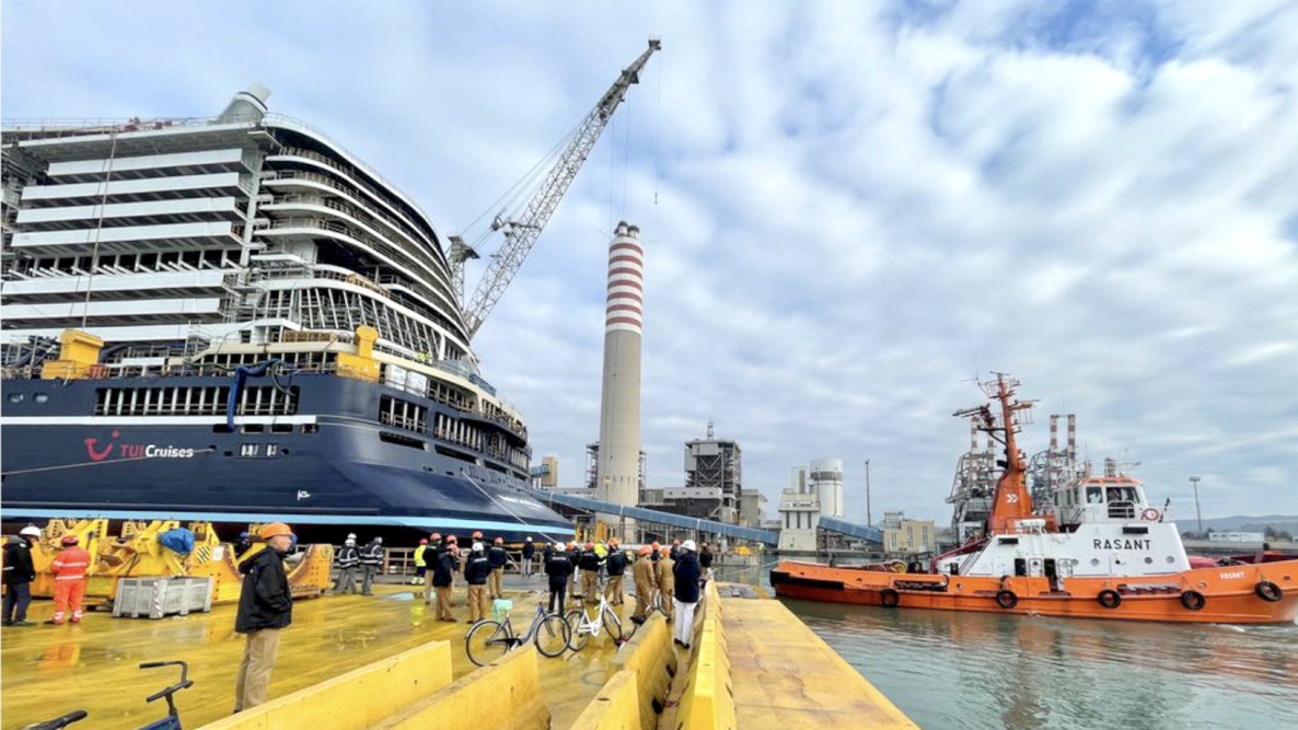 Niet alleen aan boord moet de flow kloppen, maar ook gaat op 27 november 2023 daadwerkelijk water om het schip heen. Tijdens de tewaterlating stroomt 130 miljoen water in het dok zodat het schip zelfstandig voor het eerst gaat drijven.