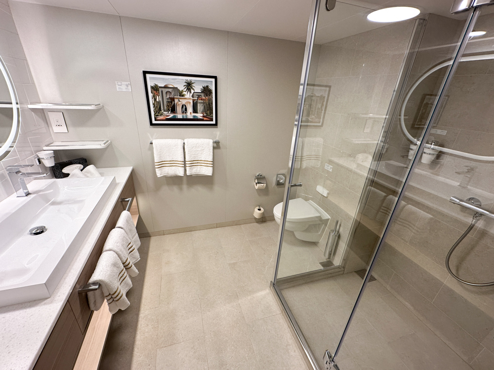 Bij elke suite horen een aantal extra’s: snellere inscheping, een (leen) spelcomputer met spelletjes (een Switch), gratis wifi, kosteloze minibar (tweemaal per dag bijgevuld) én toegang tot de vele exclusieve suite ruimtes die ik hierboven heb benoemd.