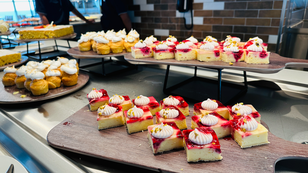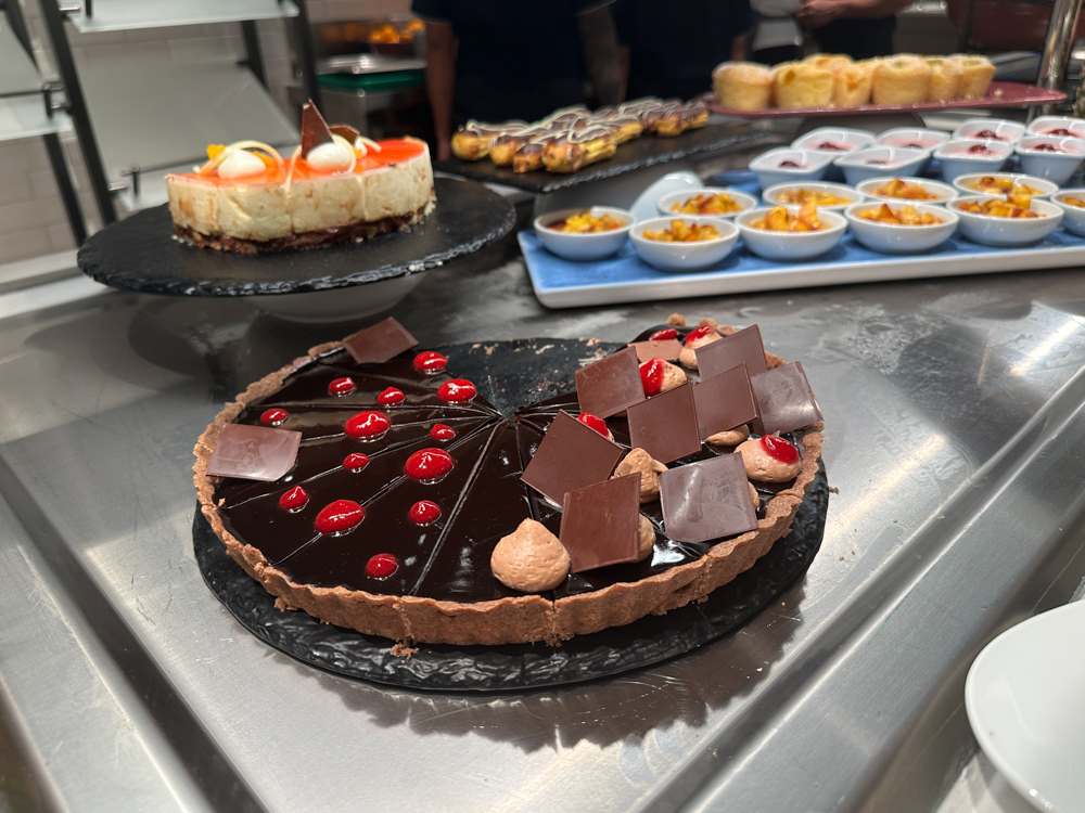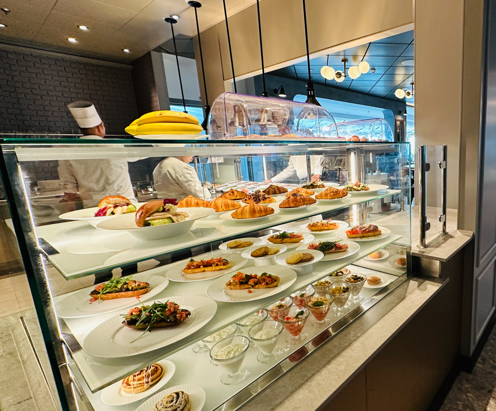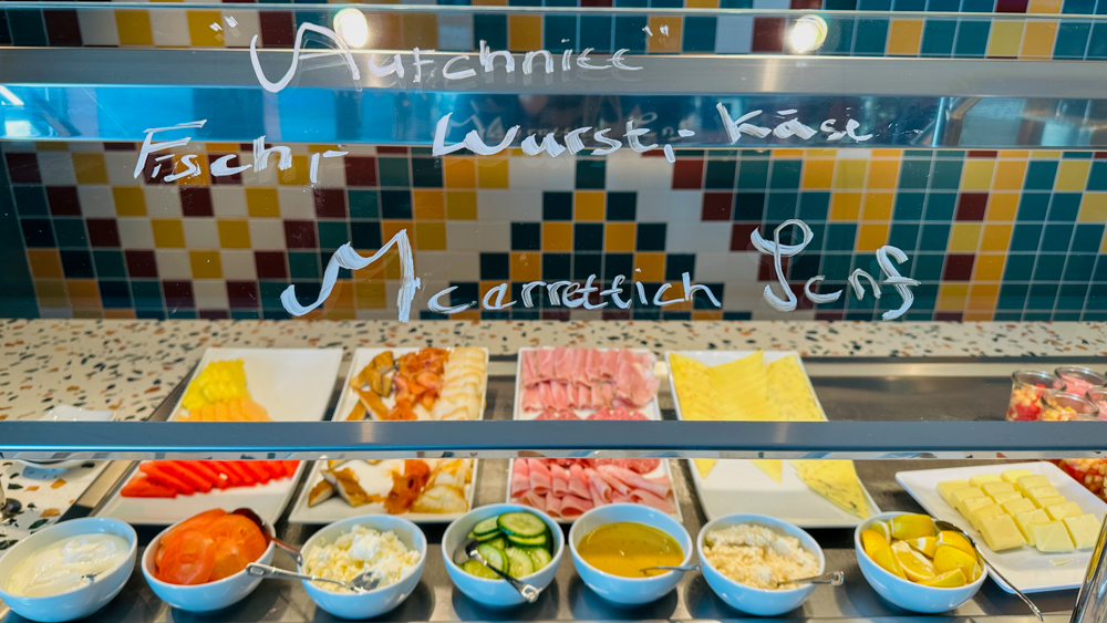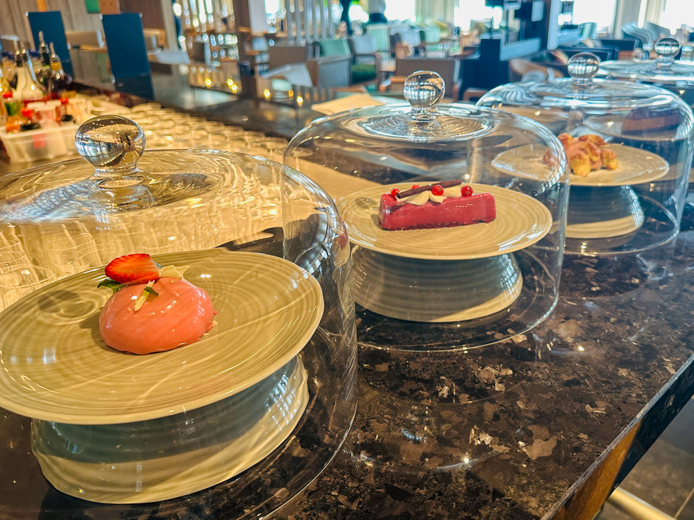 Het steakrestaurant Hofde is het enige restaurant waarvoor je voor het ontbijt een toeslag betaalt (€8,50), overigens wel een schappelijke toeslag 😊 De versgeperste jus is bij de prijs inbegrepen. Bij het ontbijt ontvang je een gevulde etagère op je tafel en zijn er diverse gerechten die je kunt bestellen, zoals wafels, crepes of zelfs een wrap. Ook zijn er uiteraard ei-gerechten, waarvan de ei in een glaasje met kaviaar ongetwijfeld de meest populaire gaat worden. Wil je een champagne met steur kaviaar dan betaal je daarvoor €19,90 bij.