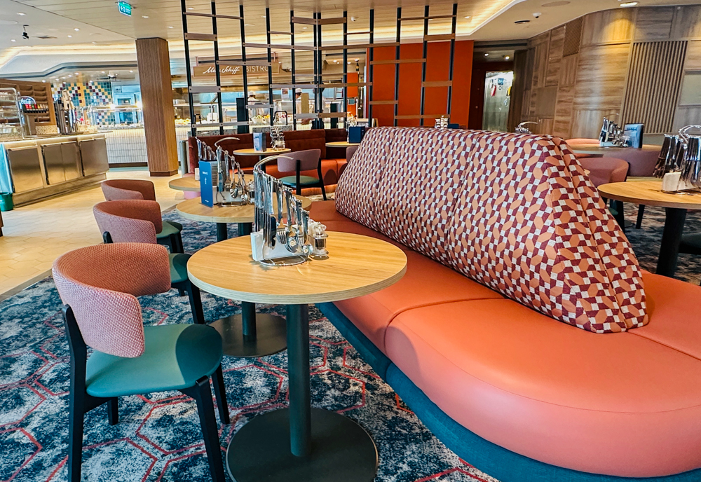 Ook op dit Mein Schiff is er een 24-uurs bistro beschikbaar. Bij het atrium op dek 5 ligt de Mein Schiff Bar aan de ene zijde, en aan de andere zijde een Bistro gedeelte. Je vindt er ontbijt, lunch en diner. De keuze is wel wat beperkter dan bijvoorbeeld in het hoofdrestaurant. Dit is overigens ook de plek waar je koffie en thee de gehele dag door beschikbaar zijn.