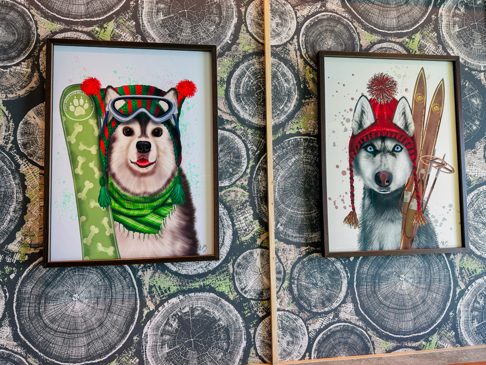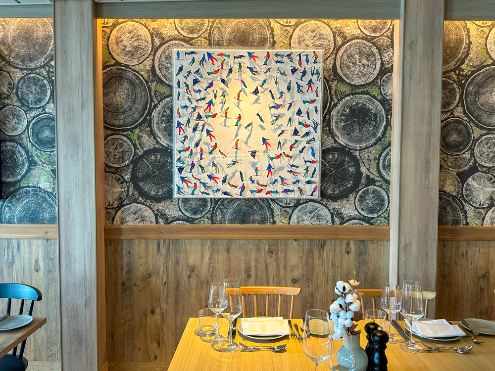 In de avond is een gedeelte van Chalet een restaurant geworden met passende schilderijen 🙂 Uiteraard staan bijpassende gerechten op de kaart die in een skigebied niet zouden misstaan.