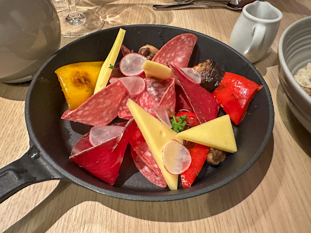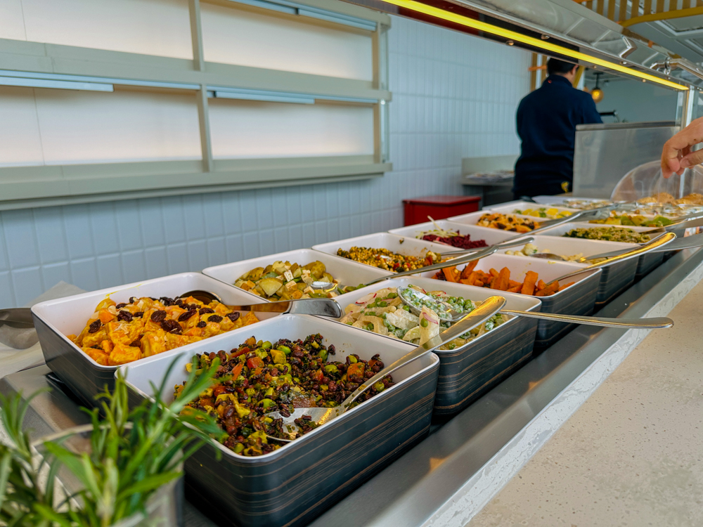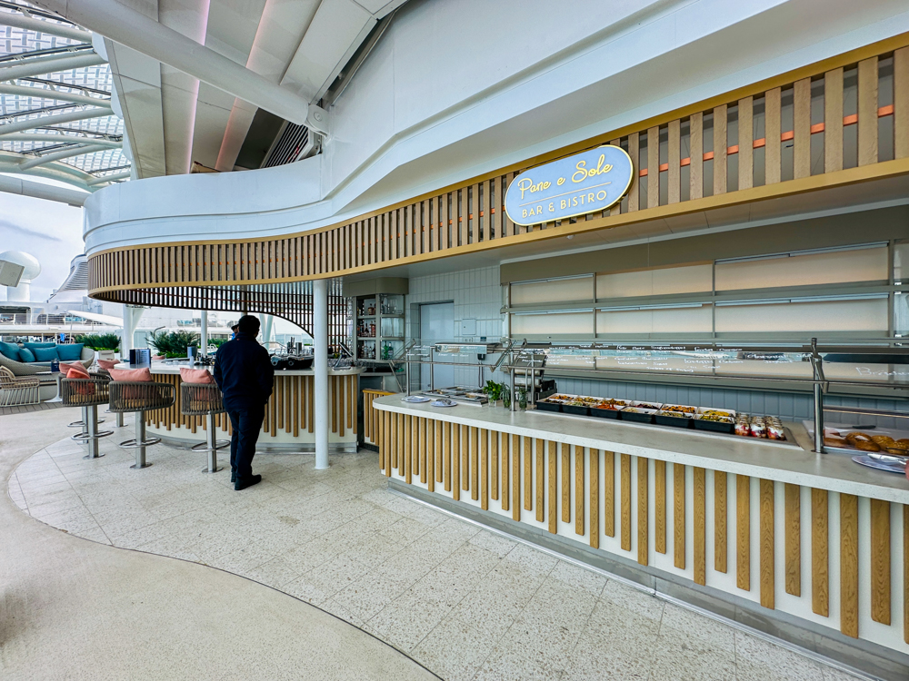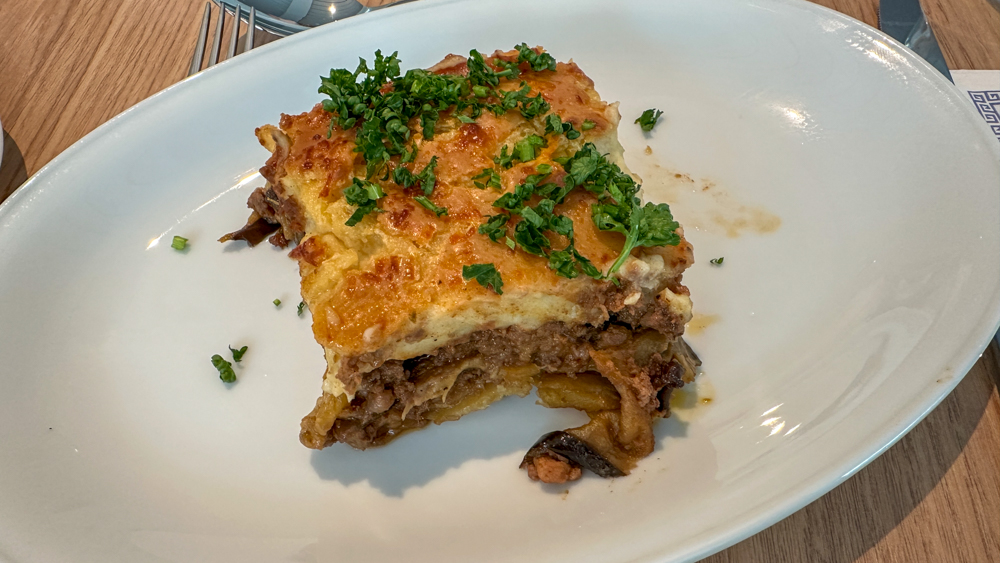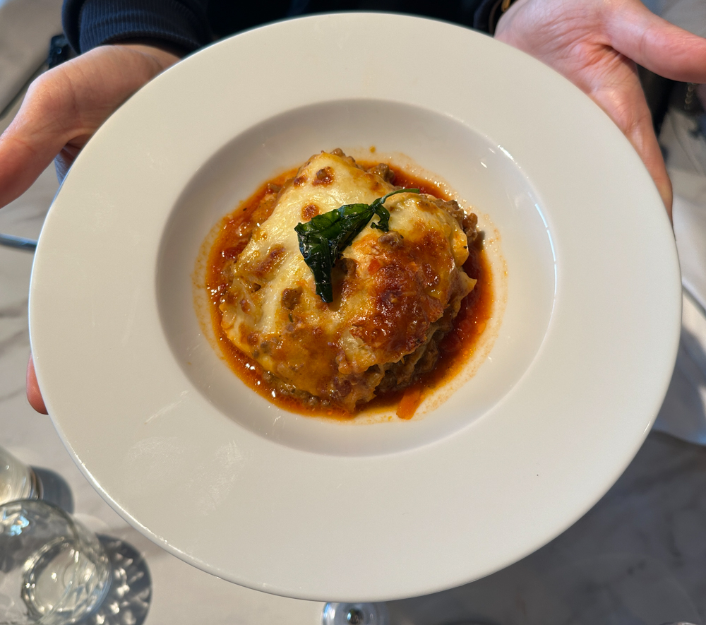 In het verlengde van de Harbour Market kan je ook lunchen in de Osteria. Dit is een separaat gedeelte waar typisch Italiaanse gerechten geserveerd worden. De meeste gerechten zijn inbegrepen, enkele luxere varianten betaal je voor bij. Op de kaart staan diverse pizza’s en pasta’s. Een Italiaanse tafelgenoot was zeer tevreden over de lasagne.