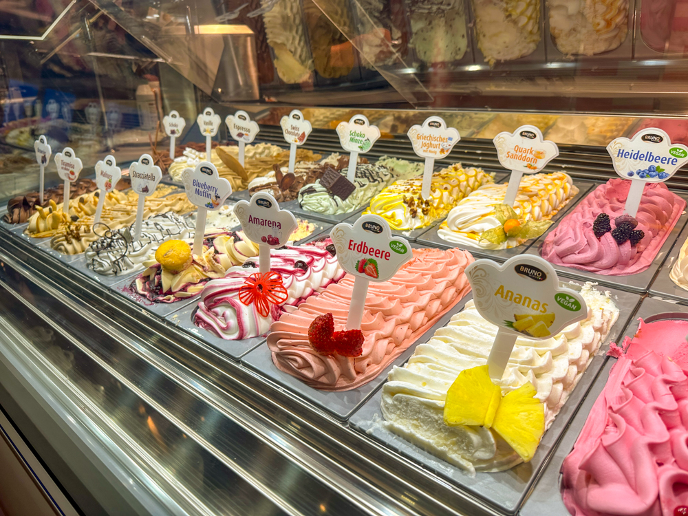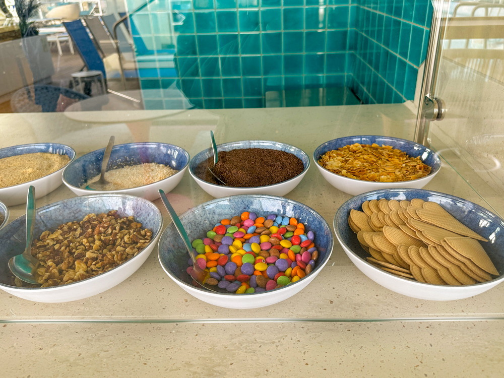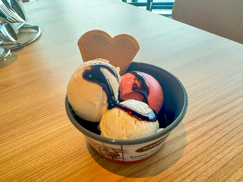 De Eisbar bij het zwembad en de ijscounter in Harbour buffetrestaurant bieden allerlei soorten ijs, die werkelijk overheerlijk zijn. Een bakje (dat daarna hergebruikt kan worden) is inbegrepen in de prijs op de Mein Schiff Relax. Bovendien mag je deze naar wens versieren met lekkernijen en met saus.