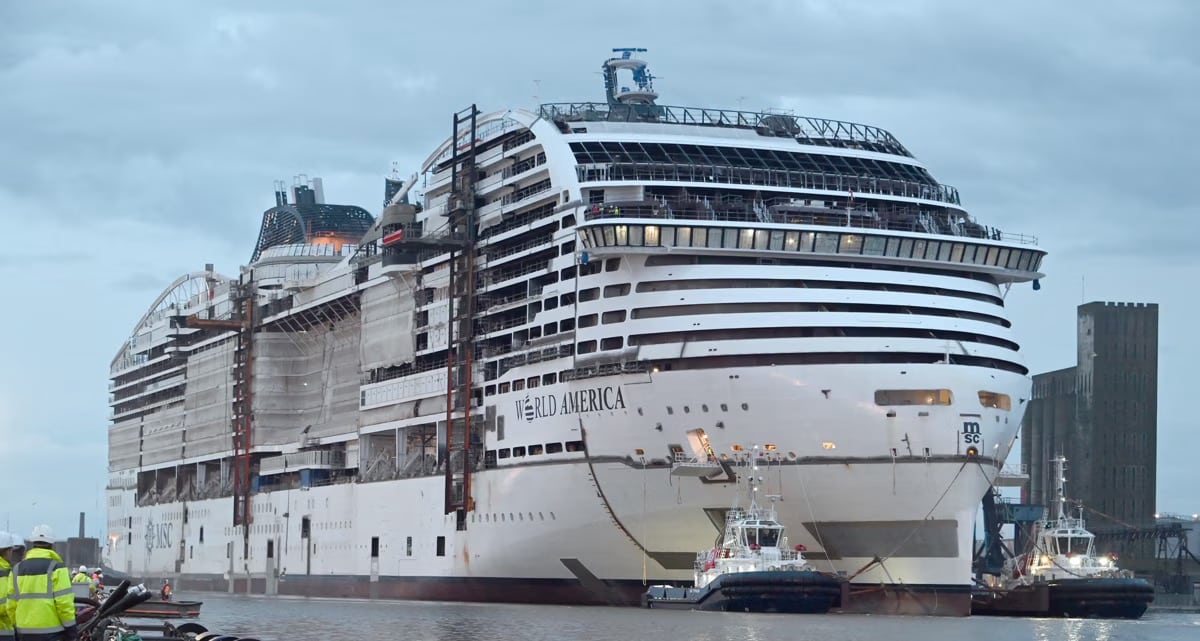 Een ander cruciaal moment in het bouwproces vindt plaats op 7 april 2024. De scheepswerfarbeiders laten de MSC World America uitdokken bij Chantiers de l’Atlantique in Saint-Nazaire. Dit markeert de overgang naar de laatste fase van de bouw, waarbij het schip zijn uiteindelijke vorm begint te krijgen. Het uitdokproces is een indrukwekkende mijlpaal, die laat zien dat het schip klaar is om de eerste proefvaart te maken en de zeeën te bevaren.