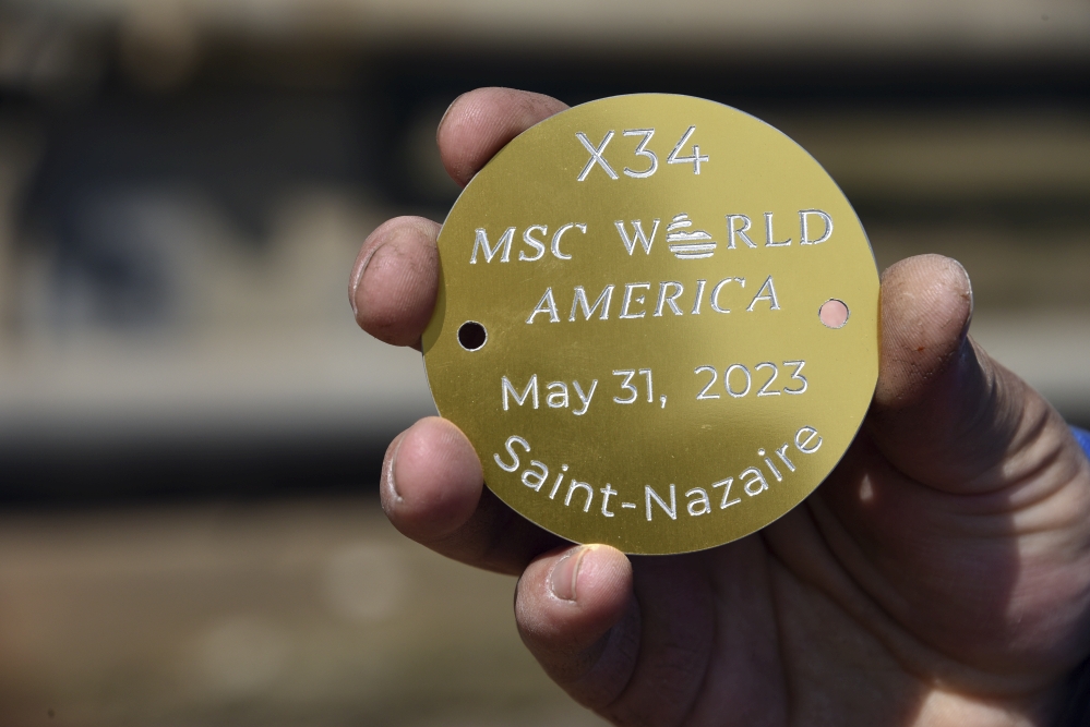 Op 1 juni 2023 wordt de kiel gelegd voor de MSC World America, Een muntceremonie markeert deze mijlpaal, waarbij de doopmoeders Silvia Turbia van MSC Cruises en Séverine Blandin van Chantiers de l’Atlantique elk een speciale munt onder de kiel leggen. Deze muntceremonie is een maritieme traditie en is een symbolisch moment in de scheepsbouw.