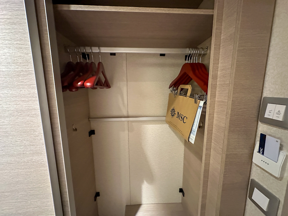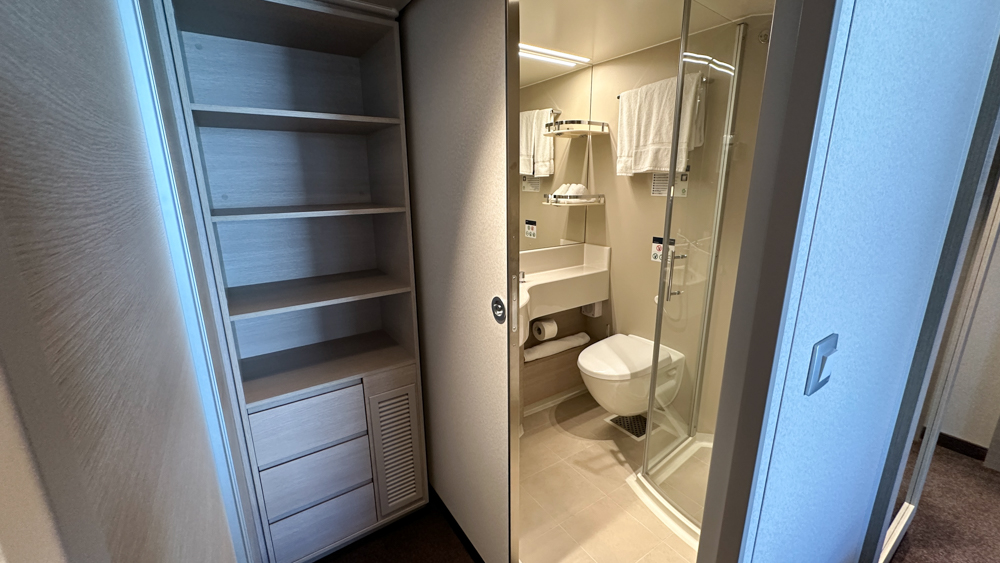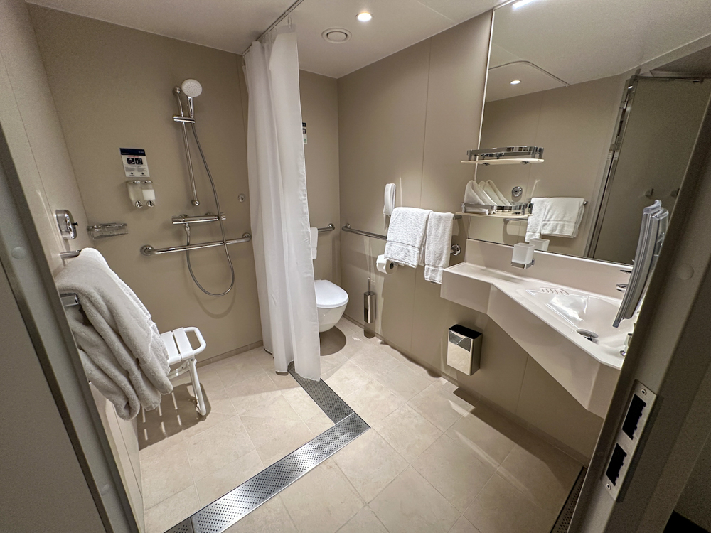 Op de World America had ik ook de mogelijkheid om een binnenhut voor mindervaliden te bekijken. Het bedienscherm voor de airconditioning zit lager. Daarnaast heeft de kledingkast een tweede hangrek halverwege het hanggedeelte. Hieronder zie je nr. 14113.