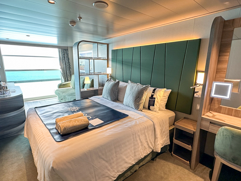Ik bekeek drie soorten hutten in de Aurea categorie: een Deluxe Suite Aurea met promenade/oceaan uitzicht (no. 16251), een Premium Suite Aurea op dek 14 (no. 14167) en de indrukwekkende Grand Suite Aurea op dek 16 (16253).