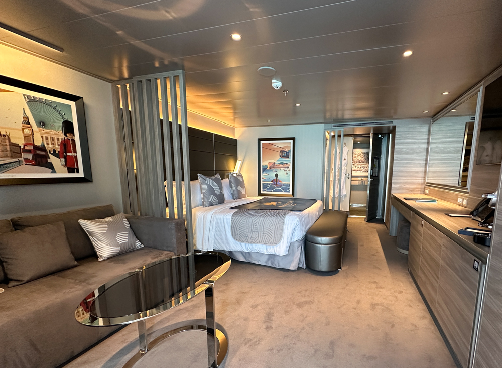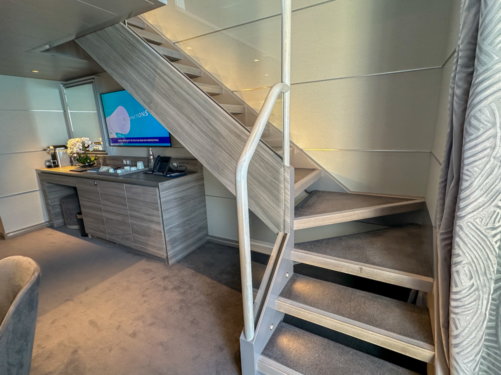 De Deluxe Suite Aurea met uitzicht op de promenade en oceaan is een mooie ruime suite met als grootste pluspunt het grote balkon. Deze suites liggen aan het einde van de gang en kijken uit op de Promenade beneden je. Een klein minpuntje is er bij de allerhoogste suite (no. 16251) en dat zijn de LED lichten van de promenade die aan gaan zodra het donker wordt. Bij deze suite op dek 16 zit het licht letterlijk bovenop je balkon. Je hebt dan vrij veel licht daarvan op je balkon. Neem dus de suites die een of meerdere dekken lager liggen.