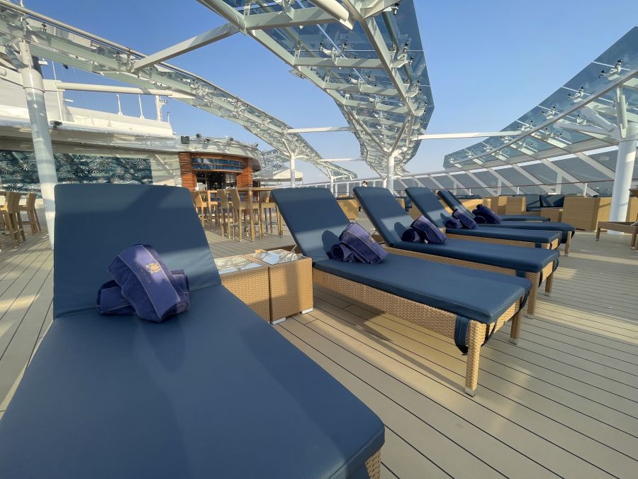 Top Sail Lounge – een privébar en lounge gelegen op het prestigieuze voorschip van het schip. Deze prachtige, lichte en elegante ruimte biedt gasten een serene omgeving met vloerlange ramen voor een panoramisch uitzicht op zee.