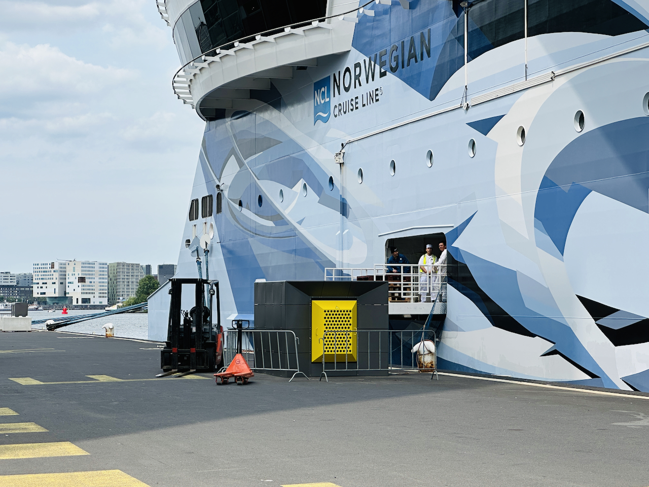 Afgelopen dinsdag 3 juni werd op feestelijke wijze de walstroominstallatie bij Passenger Terminal Amsterdam geopend. Zeecruiseschepen die hiervoor geschikt zijn, kunnen voortaan gebruik maken van walstroom bij de Amsterdamse cruiseterminal. Dankzij de nieuwe installatie kunnen schepen hun generatoren uitschakelen zodra ze aanmeren, wat zorgt voor een aanzienlijke vermindering van uitstoot en geluidsoverlast. Vanaf 2027 wordt het gebruik van walstroom op deze locatie verplicht, drie jaar eerder dan Europese regelgeving voorschrijft. Cruiseschip Norwegian Prima had de eer om als eerste officieel aan de walstroominstallatie aangesloten te worden.