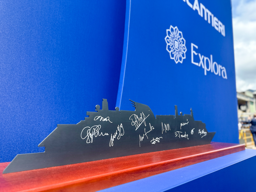 Het daadwerkelijke staalsnijden wordt op video getoond, waarbij in een grote bak met water het eerste stuk staal wordt gesneden. Dit moment wordt vervolgens gemarkeerd door het vastleggen van handtekeningen van onder andere Pierfrancesco Vago (Executive Chairman Cruisedivisie MSC Group), president Anna Nash van Explora Journeys en diverse medewerkers van Fincantieri. In 2027 voegt dit schip zich bij de vloot van Explora Journeys.