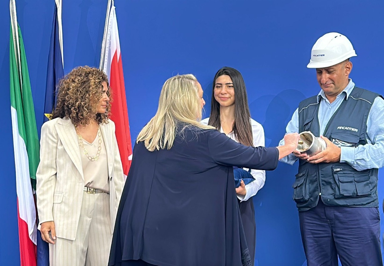 De munten worden geplaatst in een koker door de zichtbaar trotse peetmoeders van Explora Journeys en Fincantieri, die zijn betrokken bij de bouw van het LNG-schip, dat in 2027 wordt opgeleverd. Namens Explora Journeys doet Caroline Cooney-Hurrell dit. Zij is Customer Journey Strategist bij Explora Journeys en is al vanaf de start van de rederij betrokken bij alle klantcontacten. Ze werd gehuldigd als peettante van de muntceremonie van EXPLORA IV, als erkenning voor haar onafgebroken inzet en toewijding aan het merk in de afgelopen vijf jaar. Caroline speelde een belangrijke rol bij het opzetten van de activiteiten van het Explora Experience Centre en zorgde voor uitzonderlijke service en zorg voor de gasten van Explora Journeys. Namens het Fincantieri-team was Franca Parisi, Hoofd Kwaliteit en Prestatieverbetering, met de peettante van de ceremonie. De twee speciaal beslagen munten worden daarna in de romp gelast.