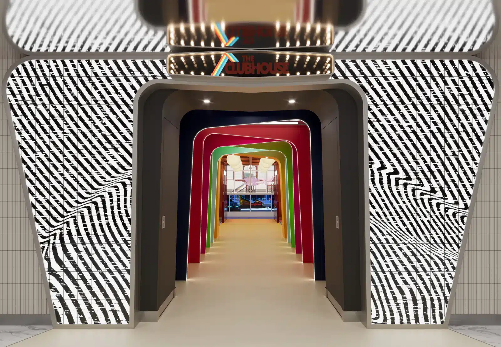 The Clubhouse is een levendige ruimte met een retro-uitstraling, waar families samenkomen voor energiek plezier en creatief spel. Het is ontworpen met een speelse, tijdloze sfeer en combineert klassieke gezelschapsspellen, de LEGO® Family Zone, botsauto’s, basketbal en rolschaatsen. Deze dynamische locatie verandert mee met het moment van de dag – overdag draait het om speelse quality time tussen kinderen en volwassenen, terwijl ’s avonds een gezellige, sociale setting ontstaat met feel good-entertainment voor het hele gezin.