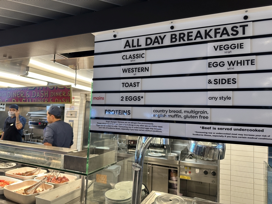 Bij Virgin Voyages zijn alle restaurants, meer dan 20 aan boord, inclusief in de prijs! Je vindt veel wat kleinere restaurants, en geen groot hoofdrestaurant dat uit meerdere dekken bestaat. Tijdens het bezoek mocht ik zelf lunchen in het food court, waar je via je telefoon (onmisbaar aan boord bij Virgin!) je bestelling plaatst bij de verschillende specialiteiten. Denk aan een hamburger station, Mexicaans, Sushi, Salade of heerlijke toetjes.
