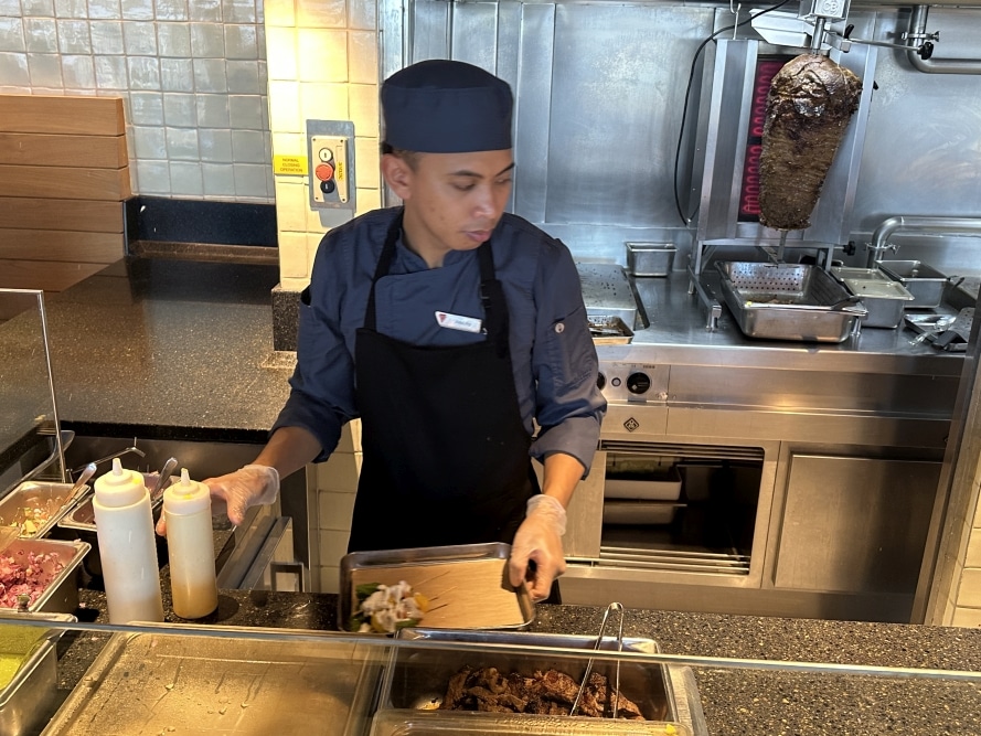 Uiteraard kan je ook langs lopen bij de verschillende stations en je eten direct bestellen. Op het schip is geen buffetrestaurant, maar deze komt het dichtste in de buurt. Heel vernieuwend vind ik ook de herbruikbare boxen met diverse specialiteiten die je mee kunt nemen naar elders op het schip. De kwaliteit van het eten in de foodcourt is erg hoog en verraste me positief!