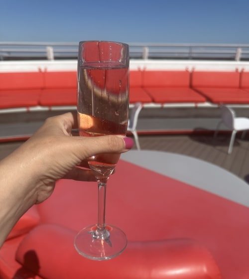 Scarlet Lady valt meteen op: met haar strakke grijze boeg en iconische rode schoorsteen is ze onmiskenbaar een schip van Virgin Voyages. Maar niet alleen de buitenkant trekt de aandacht – ook aan boord kiest Virgin voor een geheel nieuwe benadering van cruisen. Het uitgangspunt? Iedereen moet zich welkom en thuis voelen, ongeacht wie je bent.