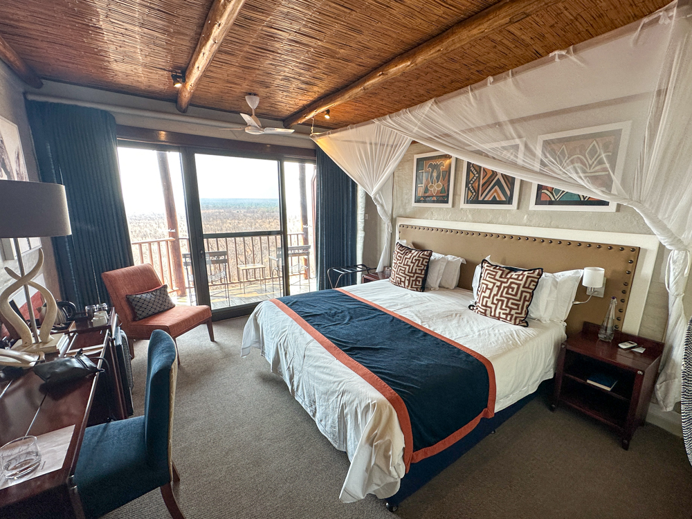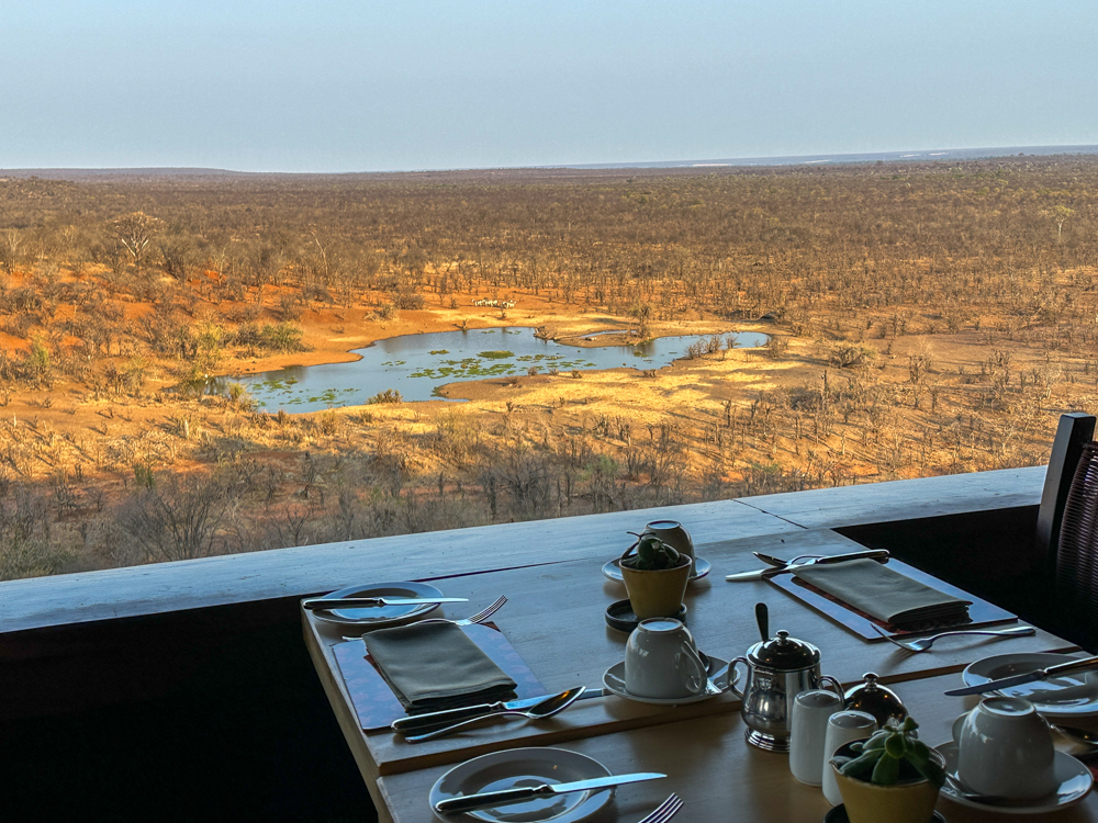 Liefhebbers kunnen deze middag deelnemen aan een optionele helikopterexcursie boven de watervallen of van een optionele neushoornsafari. Erg fijn is bovendien een shuttlebus van het hotel naar het stadje waar je souvenirs kunt shoppen. Ik geniet met volle teugen van het hotel en mijn kamer, waar ik vanaf het balkon uitzicht heb op een meer waar wildlife op af komt. Ook bij het ontbijt de volgende morgen; zebra’s staan om kwart voor 7 in de ochtend te drinken.