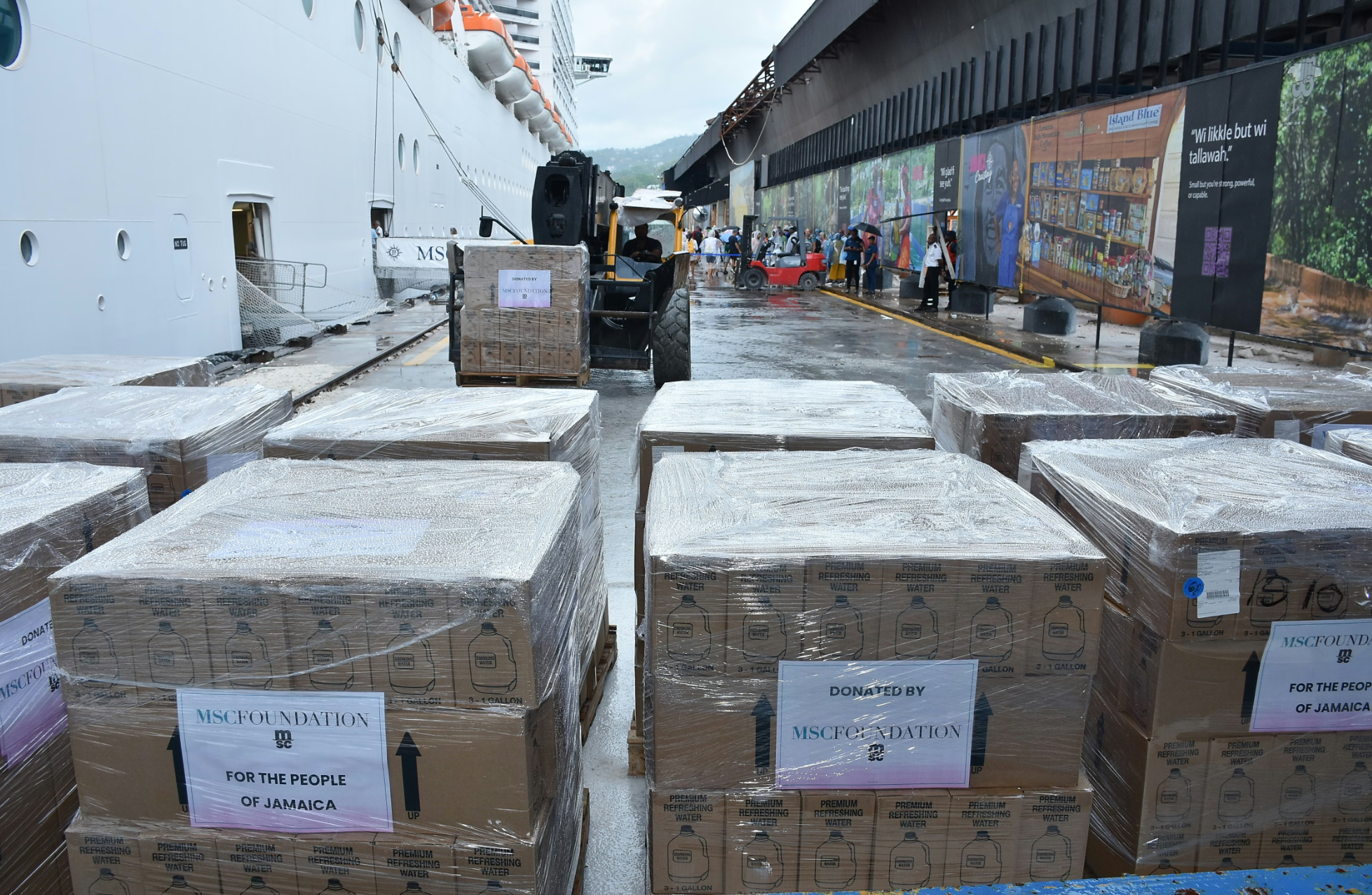 Met operationele steun van MSC Cruises vervoerde het cruiseschip MSC Divina 3.360 gallons flessenwater en 264 zeilen naar Jamaica, waar het op 11 november in Ocho Rios arriveerde. Deze hulpgoederen zullen voorzien in de dringende behoefte aan schoon drinkwater en materialen voor noodonderkomens, zoals vastgesteld door hulporganisaties.