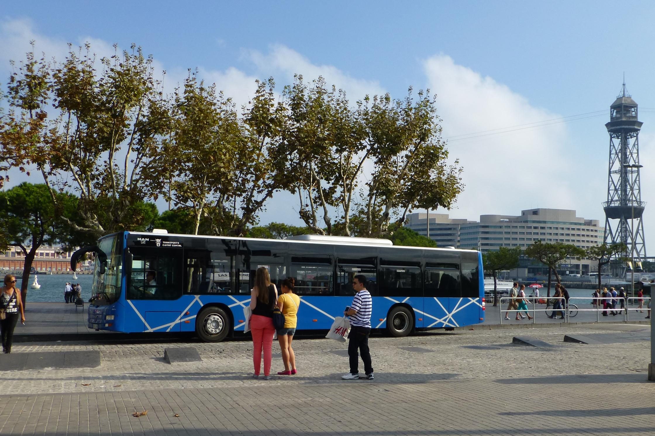 Toch is het nog een aardig stuk lopen als je cruiseschip wat verderop ligt in de cruise haven van Barcelona. De blauwe shuttlebussen van de cruiseterminal (cruiseport-bus) rijden van het plein met het Columbus-monument (bij het begin van de Ramblas) naar de terminals voor ongeveer 3 a 4 euro. Er zijn uiteraard ook taxi’s beschikbaar naar de ingang van de terminals.